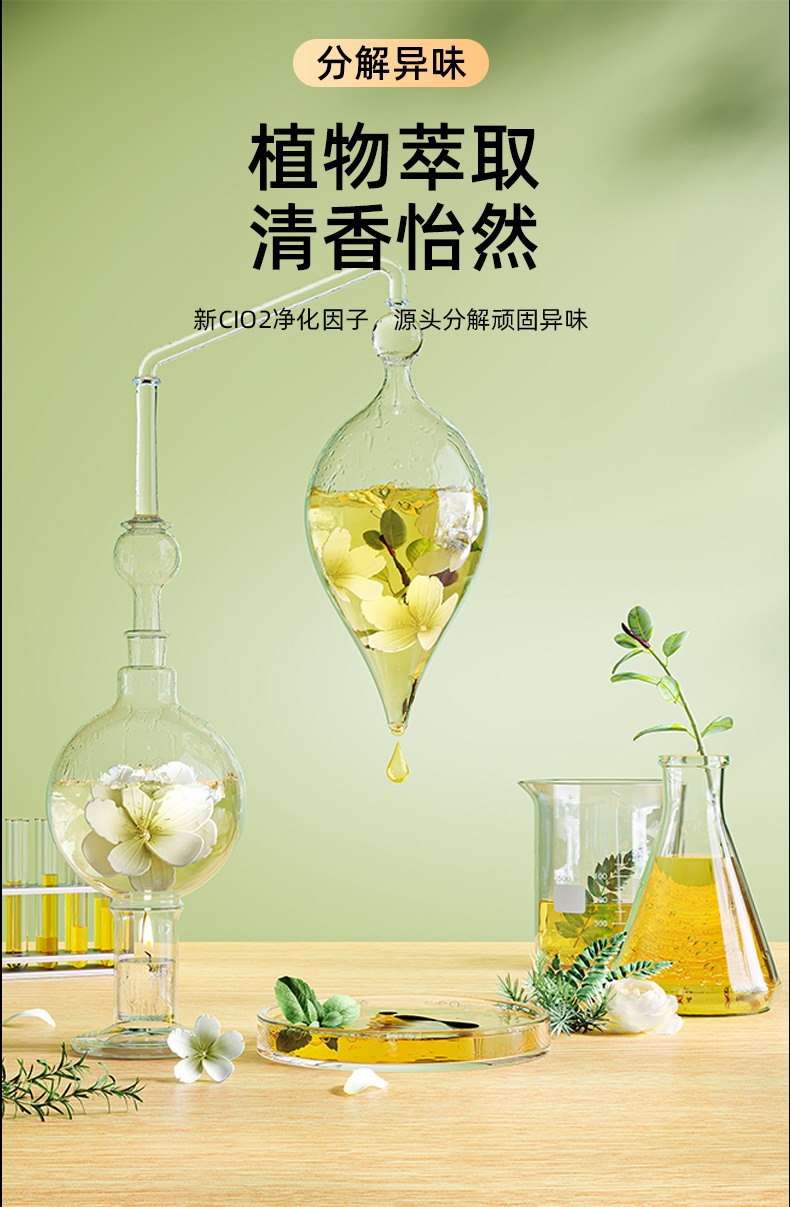 9. Rozložte pachy, extrahujte voňavý a príjemný nový čistiaci faktor CI02 z rastlín a rozložte odolné pachy pri zdroji